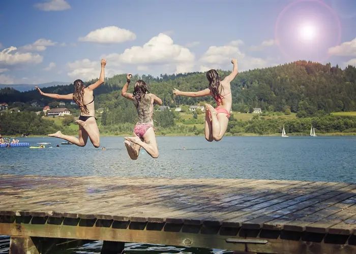 Hier im Ferienparadies St. Georgen am Längsee im sonnigen Süden Österreichs, nur 7 km von St. Veit an der Glan entfernt, genießen Sie Natur pur beim Schwimmen, Bootfahren, Turmspringen, Sonnenbaden & Relaxen, bei einer Runde Tischtennis, Beachvolleyball oder Boccia...