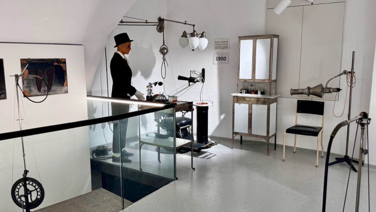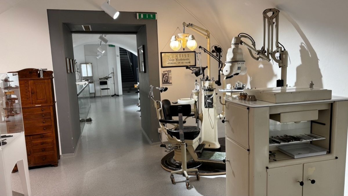 Das Zahnröntgen im Wandel der Zeit ist hier ebenso dokumentiert wie der Arbeitsplatz eines Zahntechnikers und Apparate der Zahntechnik, vom ersten Keramikbrennofen bis zum Computer für softwaregesteuerte Porzellaninlays aus dem Jahr 1985.