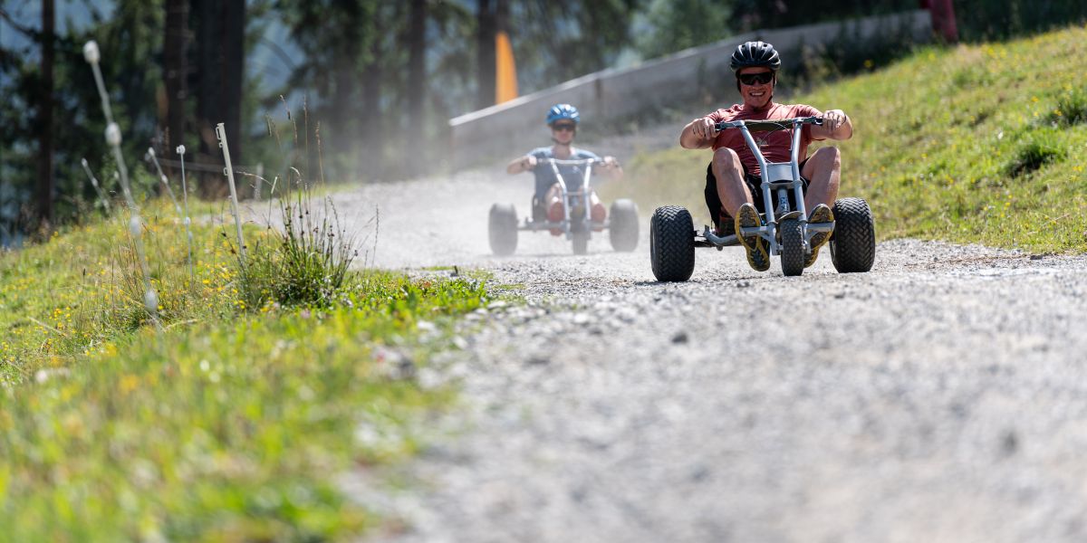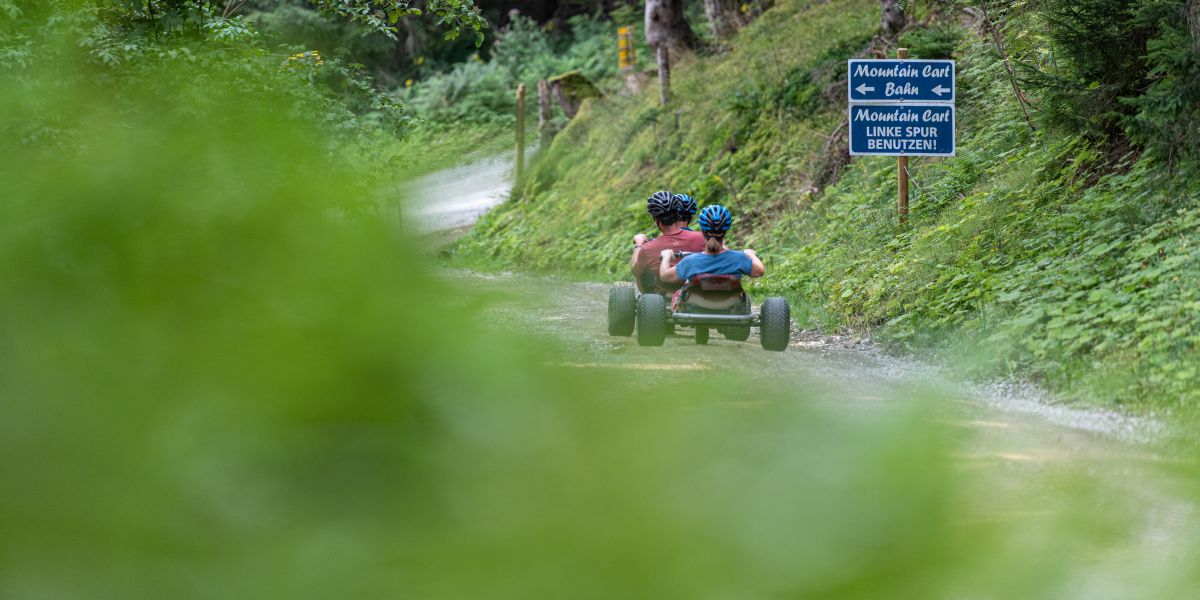Ein besonderes Sommererlebnis ist das Mountain-Cart-Fahren: Auf einer eigenen, rund fünf Kilometer langen Strecke geht es auf drei Rädern rasant ins Tal – ein Spaß für Groß und Klein.